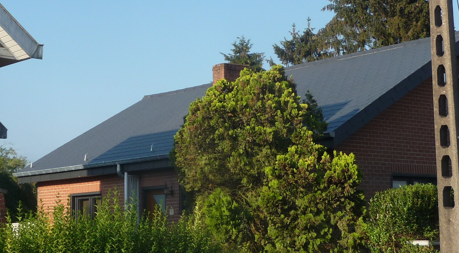 • Pose d'une couverture en ardoises Eternit "Alterna" 60 x 32 gris foncé.